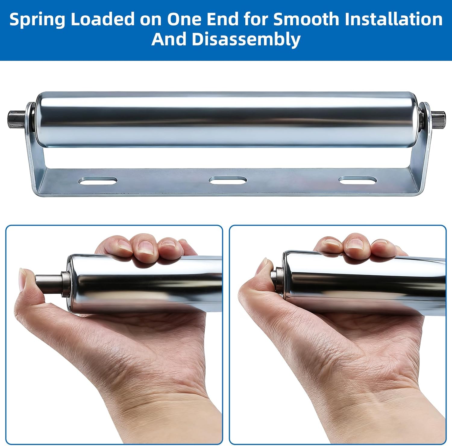 Characteristics10-inch long galvanized steel roller1.5-inch diameter roller0.45 inch diameter steel axle1/8-inch thick steel bracketsSpring-loaded mechanism for easy installation120 lb load capacityAnti-corrosion and rust-resistant coatingQuiet operation with minimal vibrationSmooth rotation with reduced frictionSuitable for conveyor systems and roller standsIdeal for woodworking outfeed tablesCan be used as boat or dock rollersAdaptable for kayak loading/unloadingCompatible with pet fence systemsDurable construction for heavy-duty use